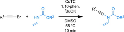 Copper-mediated synthesis of N-vinyl ynamides from N-vinyl carbamates. Le Fouler, V.; Duret, G.; Bisseret, P.; Blanchard, N. Tetrahedron Lett. 2018, 59, 3349-3352.