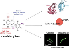 Nusbiarylins, a New Class of Antimicrobial Agents: Rational Design of Bacterial Transcription Inhibitors Targeting the Interaction between the NusB and NusE Proteins. Qiu,Y; Chan, S.T.; Lin, L.; Shek, T. L.; Tsang, T. F.; Zhang, Y. ; Ip, M.; Chan, P. K.-s.; Blanchard, N.; Hanquet, G.; Zuo, Z.; Yang, X.; Ma, C. Bioorg. Chem.2019, 92, 103203.