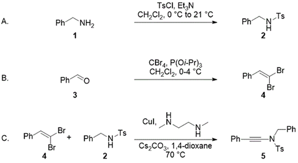 Discussion Addendum for: Synthesis of Ynamides by Copper-Mediated Coupling of 1,1-Dibromo-1-alkenes with Nitrogen Nucleophiles. Preparation of 4-Methyl-N-(2-phenylethynyl)-N-(phenylmethyl)benzenesulfonamide. Theunissen, C.; Thilmany, P.; Lahboubi, M.; Blanchard, N.; Evano, G. Org. Synth.2019, 96, 195-213.