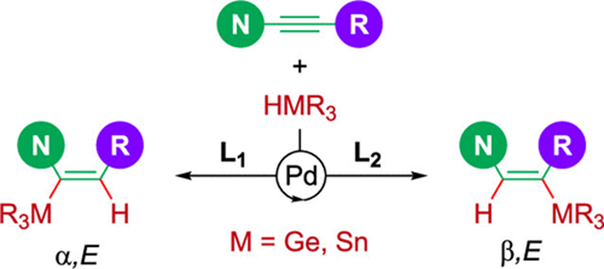 Ligand-controlled regiodivergent palladium-catalyzed hydrogermylation of ynamides. Debrauwer, V.; Turlik, A.; Rummler, L.; Prescimone, A.; Blanchard, N.; Houk, K. N.; Bizet, V. J. Am. Chem. Soc. 2020, 142, 11153-11164.
