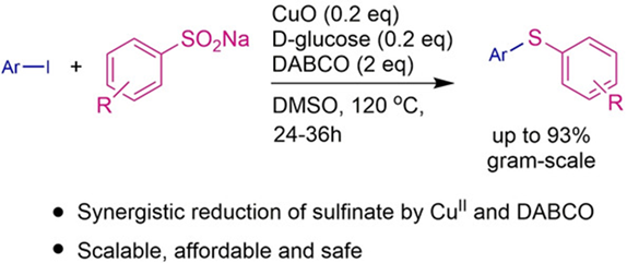 DABCO-promoted diaryl thioether formation by catalytic coupling of sodium sulfinates and aryl iodides. Liu, Y.; La, L. Y.; Ye, J.; Blanchard, N., Ma, C. Adv. Synth. Catal. 2020, 362, 2326-2331.