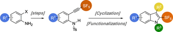 Palladium-Catalyzed Regioselective Synthesis of 2-SF5-Indenols and Further Derivatizations. Popek, L.; Cihan, M.; Blanchard, N.; Bizet V. Angew. Chem. Int. Ed.2024, 63, e202315909.