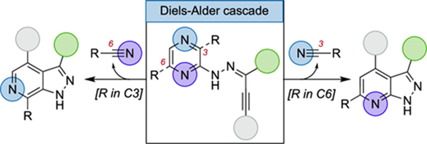 Divergent Synthesis of 6- or 7-Aza-Indazoles Via Intramolecular Diels-Alder Cascade of Pyrazines. Brach, N.; Popek, L.; Laurent, C.; Truong, M.; Bizet, V.; Kaliappan, K. P.; Blanchard, N. Org. Lett. 2023, 25, 7847-7851 [Highlighted by Reed, M.; Péneau, A. Intramolecular Diels–Alder Cascade to Access 6- or 7-Aza-Indazoles. Synfacts 2024, 20, 128).