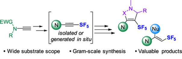 Synthesis of pentafluorosulfanylated ynamides and further functionalizations. Popek, L.; Lefebvre, G.; Debrauwer, V.; Roubaud, D.; Blanchard, N.; Meyer, C.; Bizet, V. Org. Lett. 2024, 26, 10369–10375.