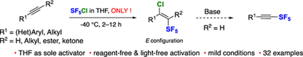 Expanding Radical Chloropentafluorosulfanylation of Alkynes. Nguyen, T. M.; Popek, L.; Matchavariani, D.; Blanchard, N.; Bizet, V.; Cahard, D. Org. Lett.2024, 26, 365-369.