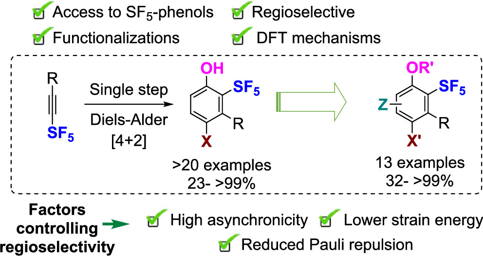 Straightforward Access to Pentafluorosulfanylated Phenols and Aminophenols via [4 + 2] Diels–Alder Cycloaddition Reaction. Abd El Sater, M.; René, F.; Blanchard, N.; Cabrera-Trujillo, J. J.; Miqueu, K.; Bizet, V. ACS Org. Inorg. Au 2025, 5, 275-287.